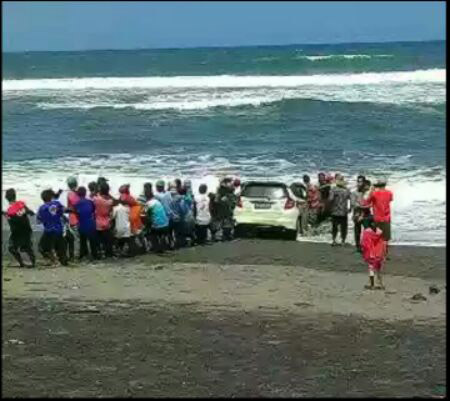 Aneh, Honda Jazz Ini Kebelet Berenang Di Pantai Depok Yogyakarta