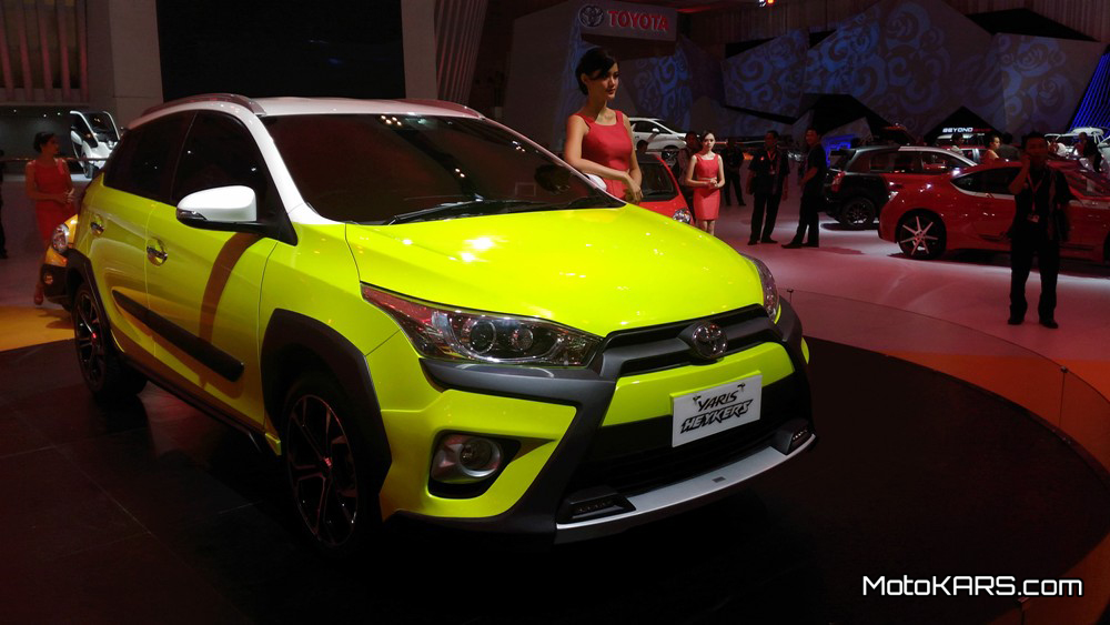Sedangkan konsep satunya Toyota Yaris Heykers adalah Yaris dengan tampilan crossover, menampilkan sosok jangkung khas crossover yang funky dan tough. Tapi ya lebih kurangnya ini hanyalah Yaris yang ditinggikan, kasih velg berbobot dan body moulding campur warna hijau stabilo. Secara tampilan memang eye catching tapi kok kumis lelenya makin tebel aja.