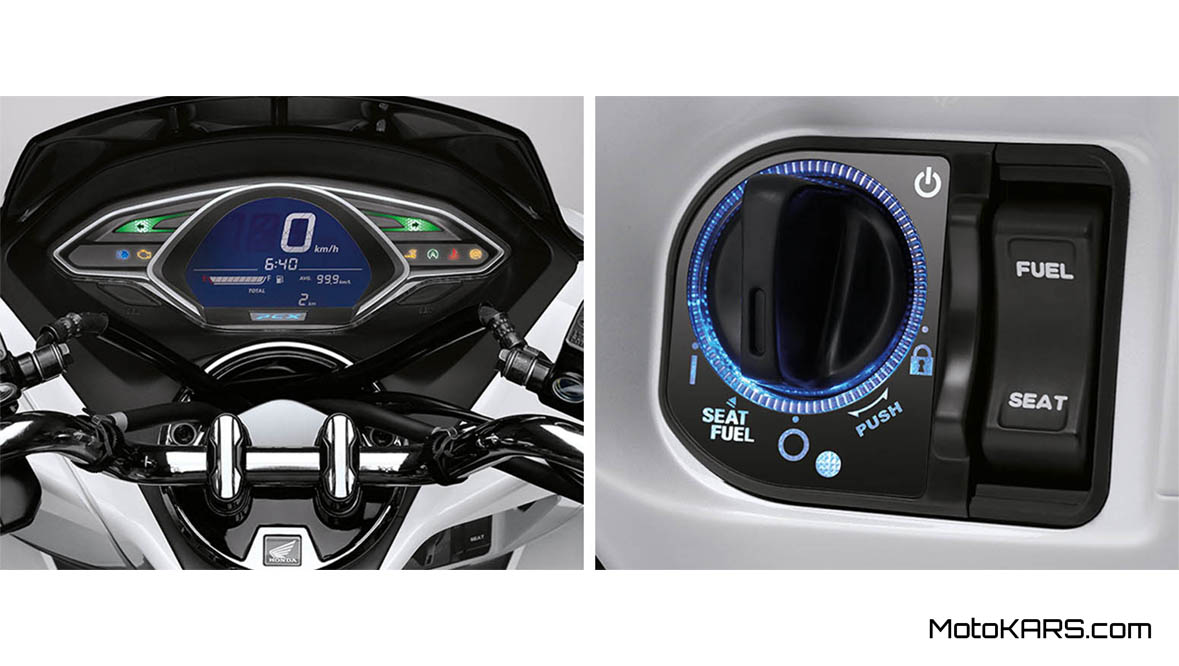 Selain itu sudah dilengkapi cakram depan belakang dan ada trim ABS. Fitur Honda PCX 150 2018 ini juga cukup masif dengan keyless entry,charger outlet, speedometer LCD, bagasi besar dan tangki 8 liter.