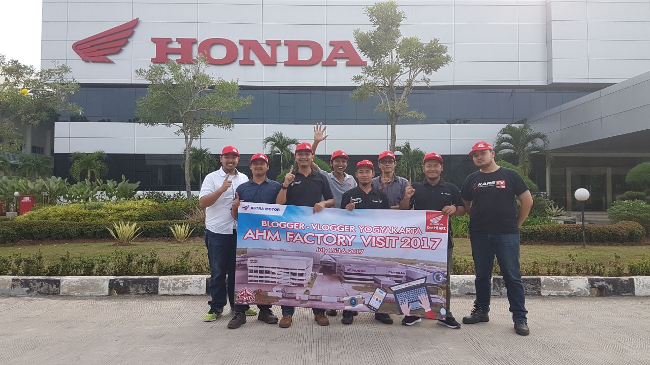 KARS TV pun sebagai salah satu perwakilan motovlogger Jogja juga turut meramaikan acara dari AHM tersebut, selain itu dari MV Jogja juga ada RidersJogja. Lalu yang turut meramaikan dari kami adalah blogger otomotif Yogyakarta yang tergabung dalam Koboys. Yup KARS TV memang lahir dari rahim Koboys juga sehingga kami menjadi satu kesatuan dalam rombongan AHM Jogja. Berangkat sejak pukul 5 pagi dengan pesawat terbang dan sampai pukul 8 pagi, sayangnya Sabtu pagi hari bukan berarti lalu lintas lancar. Kami terjebak kemacetan sehingga baru sampai AHM plant Karawang pada jam 12 siang.