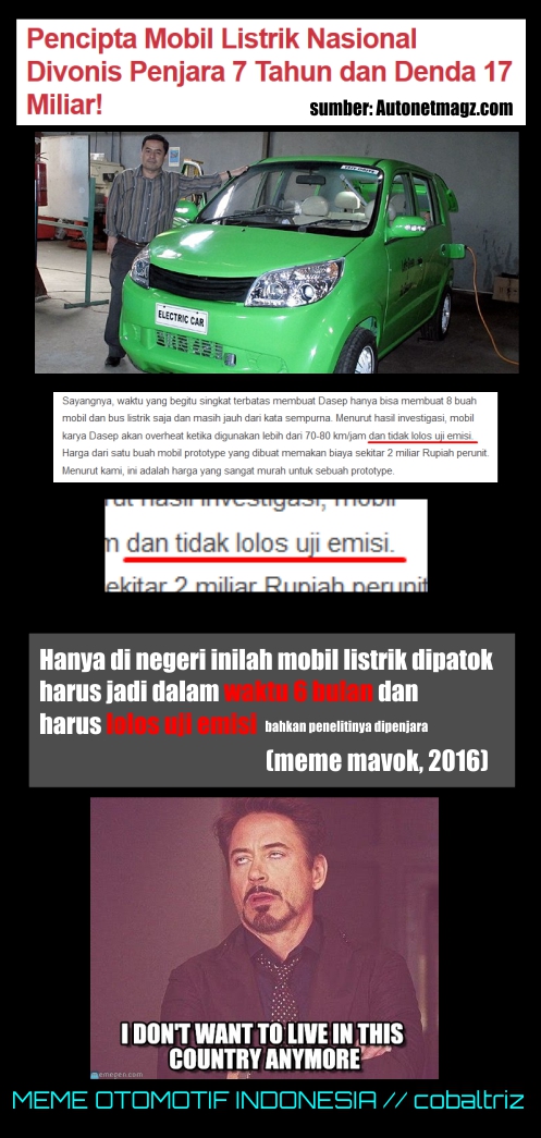 Yang jelas, dua kasus mobil listrik yang berturut-turut, dan disertai alasan yang tidak logis ini, jelas menodai citra Indonesia yang dibayangkan sebagai negara yang “welcome” terhadap kreativitas anak bangsa. Akankah kita kehilangan sosok seperti Ricky Elson kedua kalinya, yakni Pak Dasep?