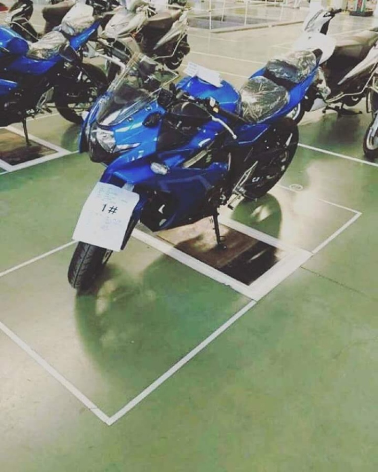 Spyshot motor ini berhasil tertangkap di pabrik basis pembuatan motor Suzuki yang berada di China, yup basis perakitannya Inazuma tuh. Nama pabriknya Haojue Changzhou factory Suzuki. Berbicara dari segi tampilan, motor ini nampak kompak seakan berada di kelas 150 cc. Namun yang membuat Admin jadi bertanya-tanya adalah mesinnya dikatakan pengembangan dari mesin Inazuma. Lhaa? ini 250 cc? klo dari Inazuma jadi inline twin dong? tapi kok kayak ramping?