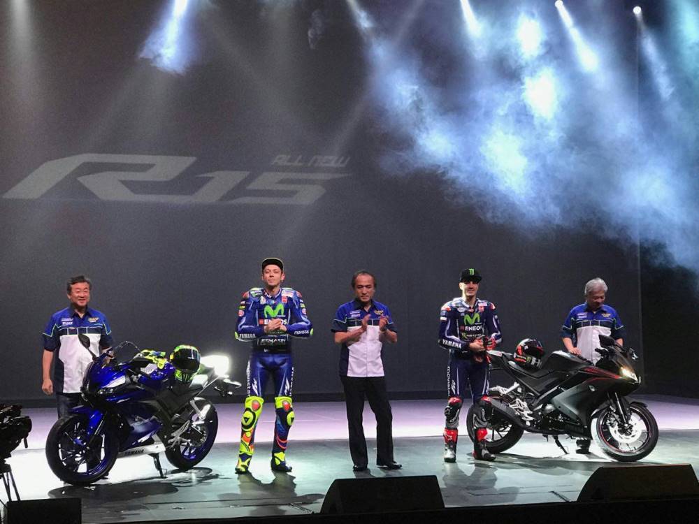 MotoKARS.com – Ngeri mas bro…. ngeri… sebenarnya admin juga sudah menduga kedatangan Valentino Rossi dan Maverick Vinales ke Indonesia semata-mata bukan karena perilisan YZR-M1 terbaru. Tapi karena ada motor baru yang akan dirilis YIMM dan itu pasti kental dengan nuansa racing. Menimbang nimbang meski Yamaha Aerox 155 2017 sudah tampil tapi belum rilis resmi, jadi admin duga ya Aerox. Ternyata justru lebih mengagetkan lagi bahwa duet rider MotoGP garputala ini memperkenalkan Yamaha R15 2017 bro!